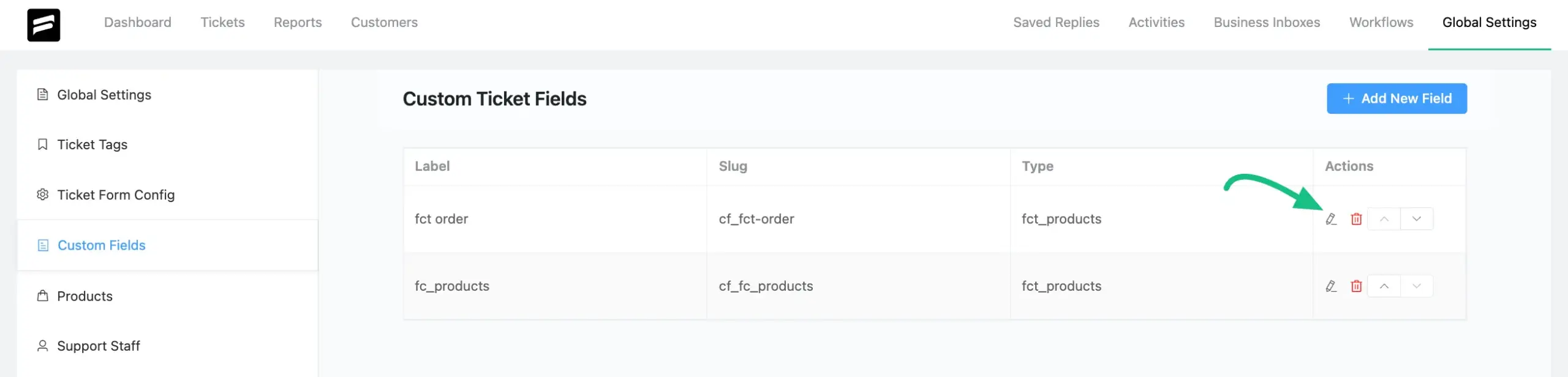 A successful confirmation message will appear. Now, you can edit or delete the custom ticket fields here.