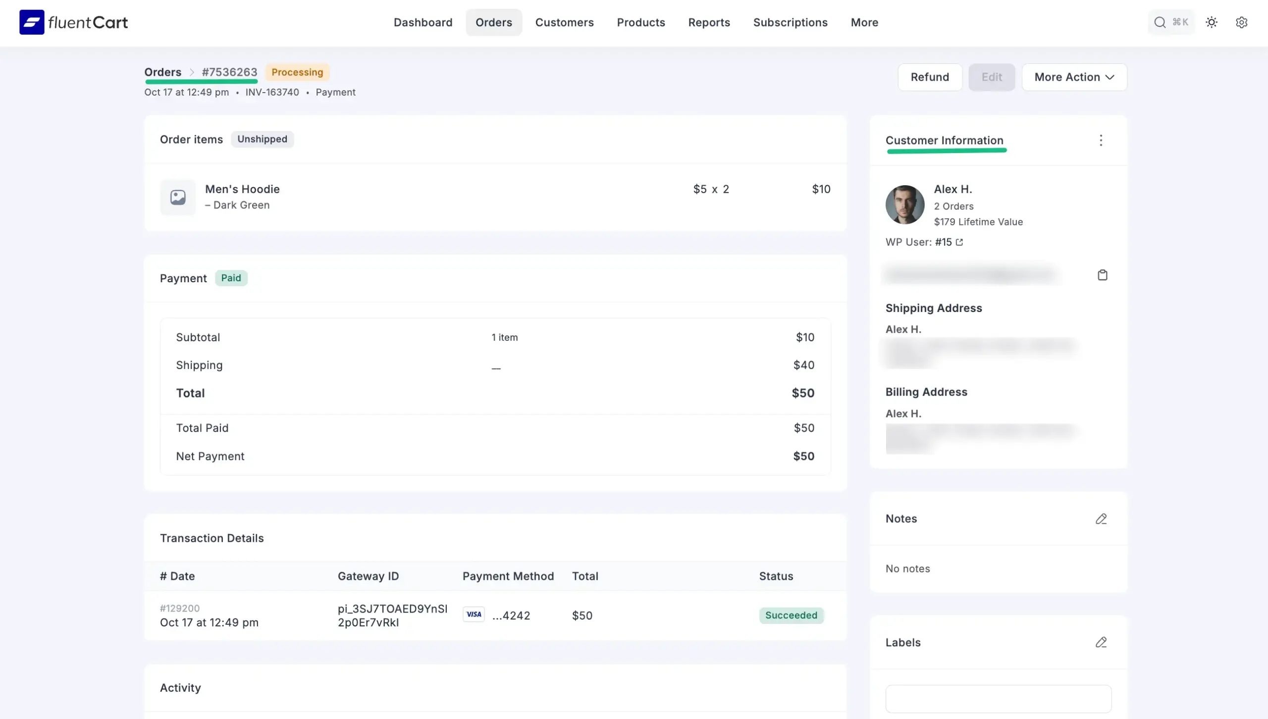 FluentCart is a high-performance e-commerce plugin built for WordPress, designed to give you full control of your store while keeping things fast, scalable, and simple. The integration with Fluent Support allows agents to view the purchase history of any FluentCart user and enables customers to open tickets for issues related to specific FluentCart products or orders.